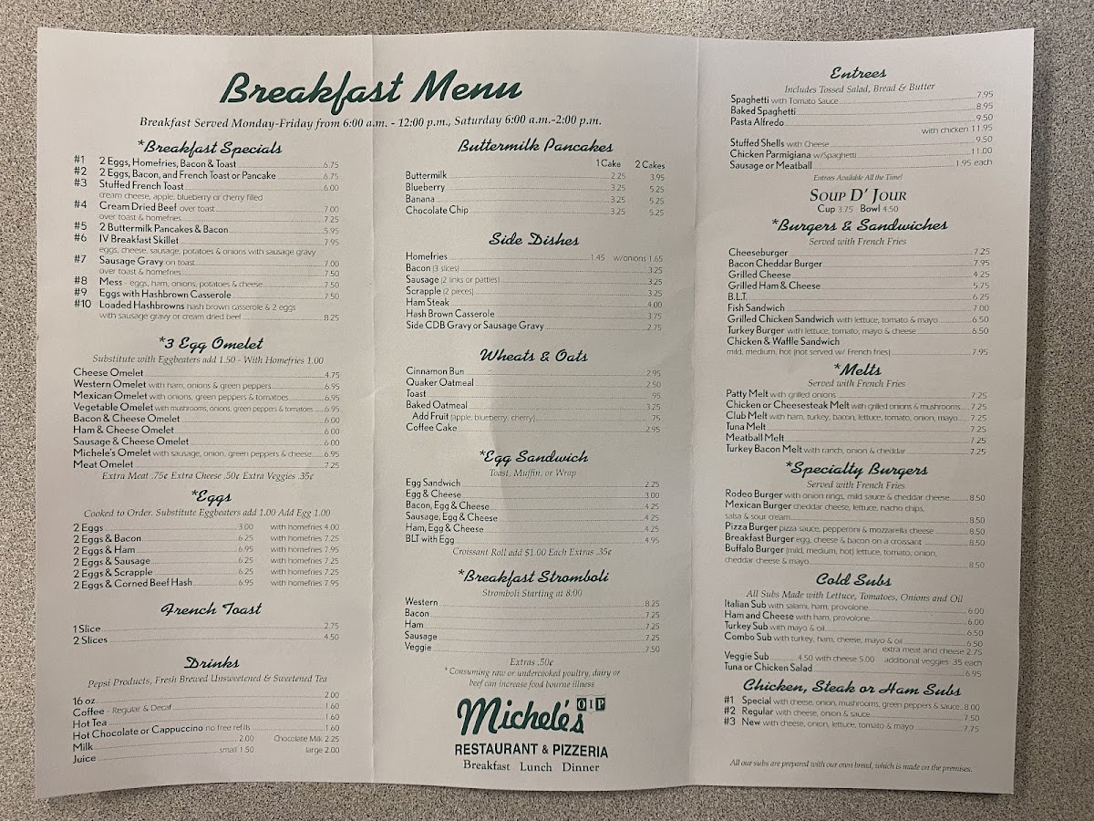 From a reviewer’s perspective, the menu at Michele's Oip Restaurant & Pizzeria feels well-rounded and comforting, offering a mix of classic American favorites and Italian-inspired staples that define the restaurant’s identity. Hearty options like the Cheese Steak stand out as a reliable choice, delivering the kind of satisfying, no-frills flavor expected from a neighborhood favorite. For those who enjoy rich, homestyle dishes, items such as Side CDB Gravy or Sausage Gravy and Hamburger Gravy reinforce the menu’s focus on warmth and familiarity, appealing especially to diners looking for filling, comforting meals. Pizza lovers are well served with the Pepperoni Pizza, a timeless staple that reflects the pizzeria side of the restaurant, balancing a crispy crust with generous toppings. The menu also offers variety beyond lunch and dinner classics, highlighted by the Apple Stuffed French Toast, which adds a sweeter, indulgent option and shows versatility in breakfast-style offerings. Completing the picture is the Calzone, a folded, oven-baked option that combines the essence of pizza with a heartier, enclosed presentation. Taken together, these standout dishes create a cohesive menu that emphasizes comfort, tradition, and consistency, making the overall dining experience feel dependable and satisfying for a wide range of tastes.